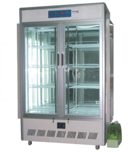 Intelligent artificial climate incubator RTOP-800D, volume: 800L. Duct ventilation, studio soft wind, temperature and humidity uniformity; luxury aluminum frame, silver or gold, never deformation aging, never rust, exquisite beauty.